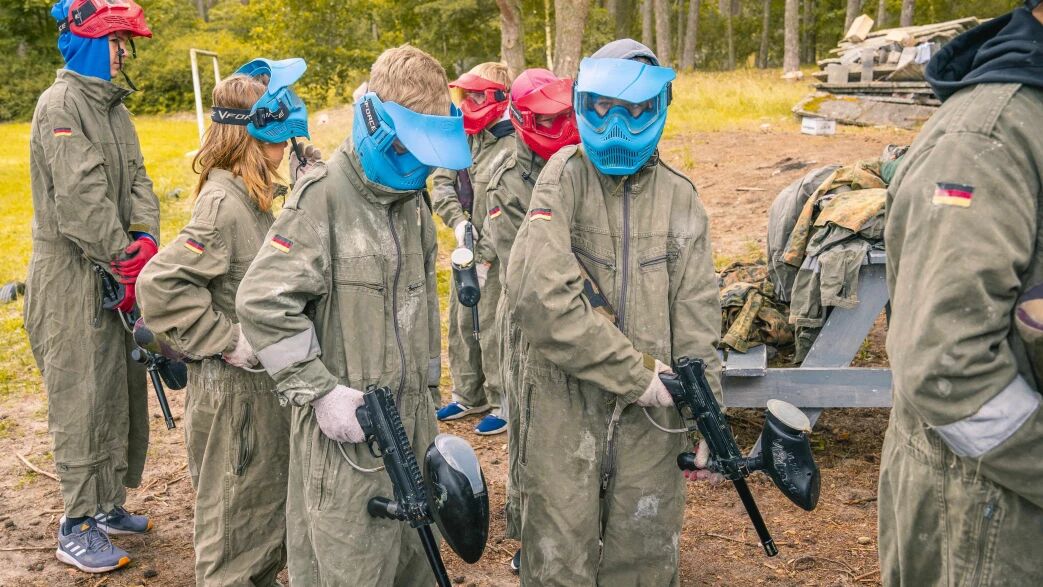 paintball - na paintball'owy poligonie ( forty, zasieki, okopy i zasadzki). Gra trwa ok 1,5 h, do dyspozycji pakiet startowy 100 kulek. Istnieje możliwość dokupienia dodatkowego pakietu 100 kulek/ ok.25 zł.